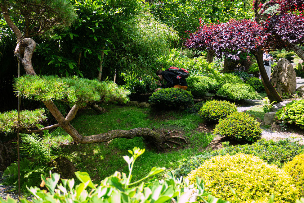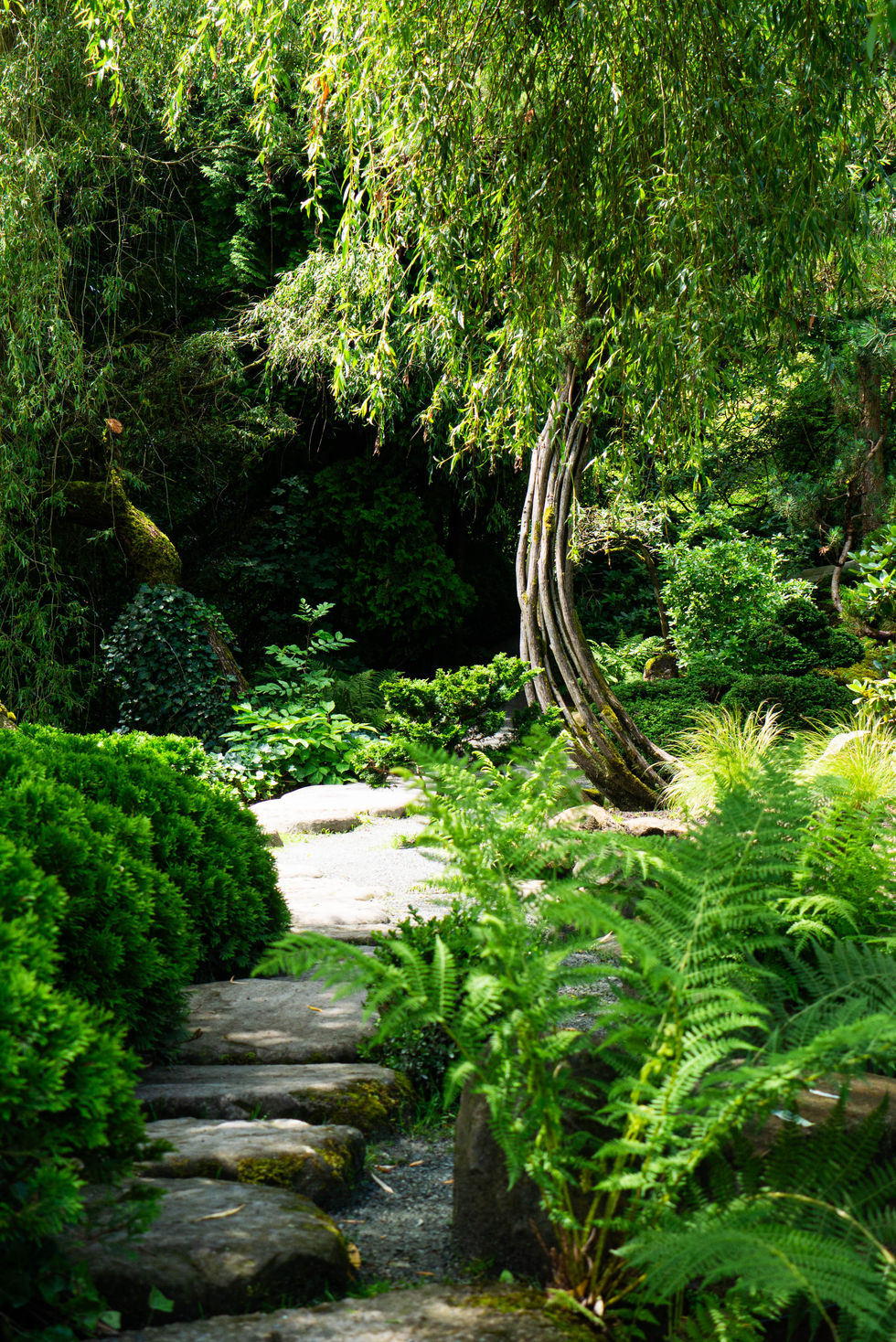 Immerse yourself in the tranquility of lush green gardens and natural landscapes. These images capture the beauty of nature, from twisted tree trunks to bamboo water features, creating a serene and peaceful atmosphere.